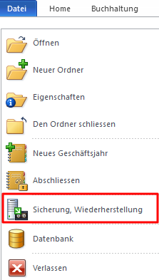 1. Gehen Sie zum Menü "Datei" und klicken Sie dann auf "Sichern, Wiederherstellen".