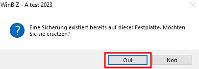 5. Markieren Sie "Ja" nur, wenn Sie eine bereits vorhandene Sicherung am selben Ort ersetzen wollen.