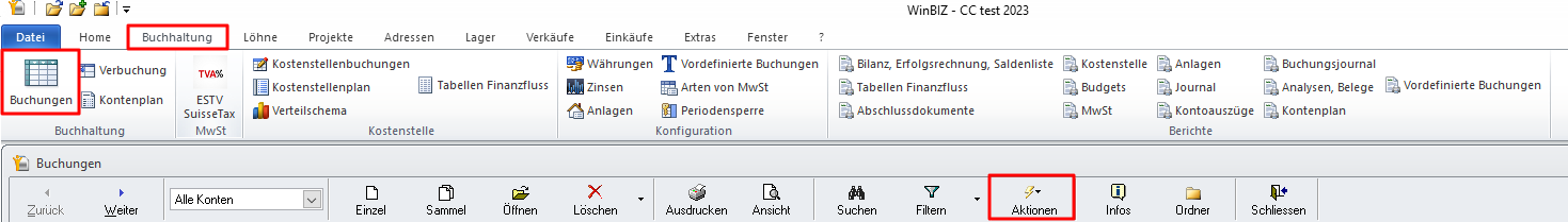 1. Gehen Sie zum Menü Buchhaltung, Buchungen.