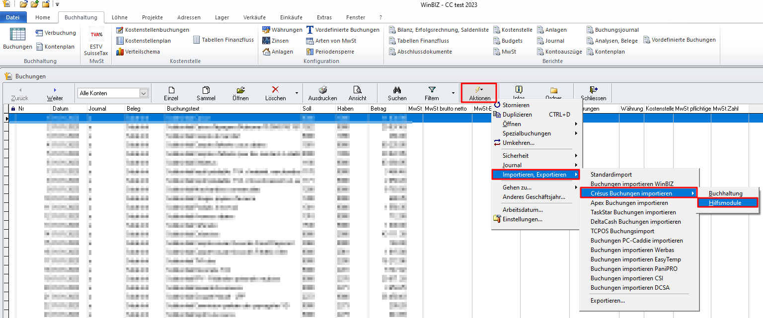 Buchungen aus den Hilfsmodulen von Crésus importieren