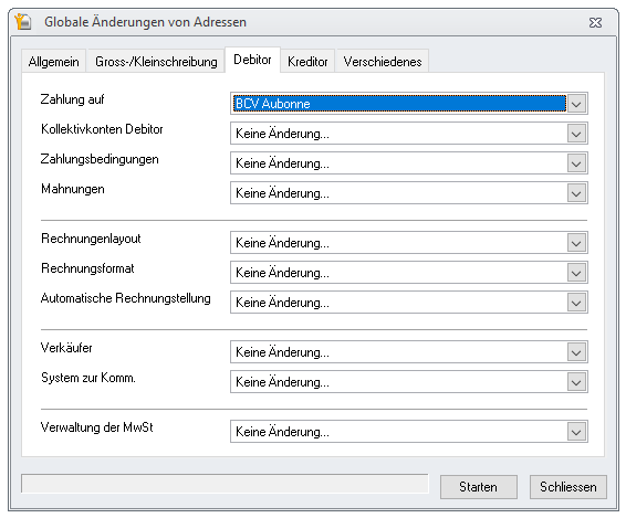 - Wählen Sie auf der Registerkarte Debitor die Standardbank.