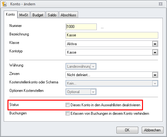 Sie möchten in einer Auswahlliste ein Konto auswählen, aber das Konto erscheint nicht. Es gibt zwei Möglichkeiten :