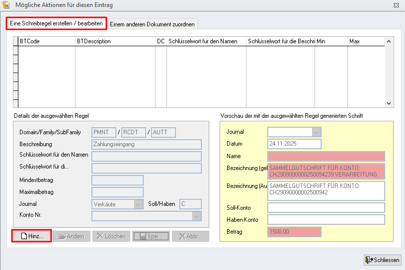eine Regel erstellen, um automatisch einen Buchungssatz zu generieren.