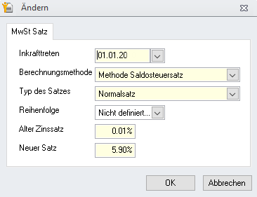 Ich wechsle von der Berechnungsmethode der effektiven Mehrwertsteuer zum Saldosteuersatz. Wie muss ich in Winbiz vorgehen?