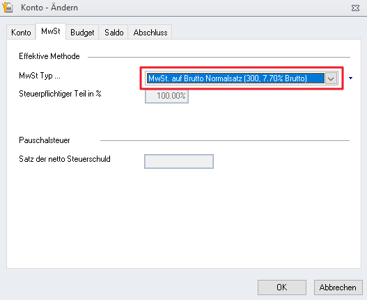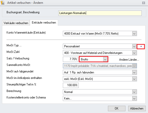 - Stellen Sie die Buchung der Brutto-Mehrwertsteuer ein.