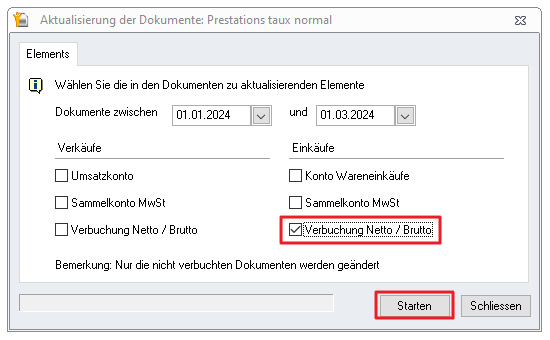 7. Buchen Sie die Gesamtheit der Dokumente brutto neu