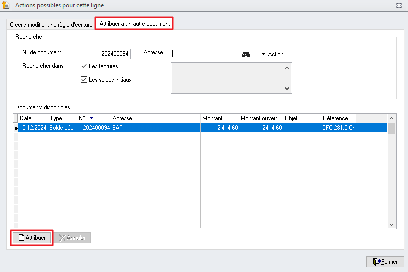 - Suchen Sie anhand der Dokumentennummer oder der Adresse die Rechnung, die Sie dieser Zahlung zuordnen möchten.