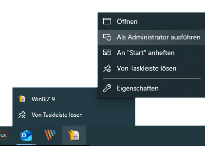 - Klicken Sie mit der rechten Maustaste auf die Winbiz-Verknüpfung.