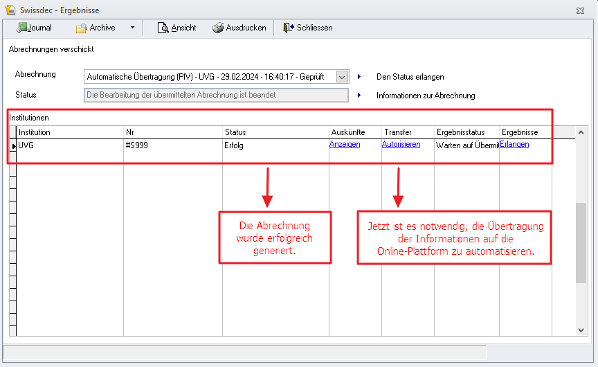 8. Erfolgreiche Swissdec-Übertragung