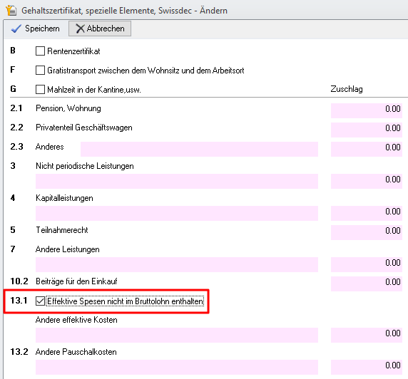 Um das Kreuz in diesem Feld zu drucken, müssen Sie zwei Sachen nach den Swissdec-Standards parametrisieren: