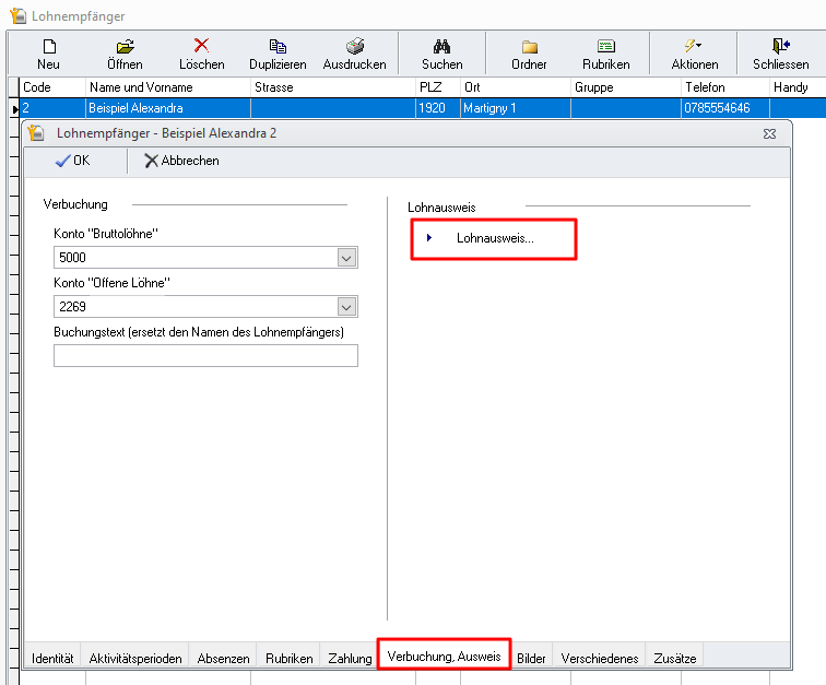 In den Lohnempfänger des Lohnmoduls