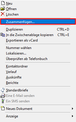 - Klicken Sie mit der rechten Maustaste auf die Adresse und wählen Sie Zusammenführen.