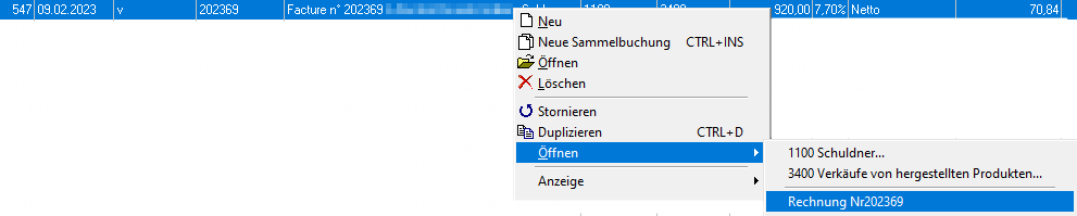 Beispiel für eine Buchung, die mit einer Rechnung verknüpft ist: