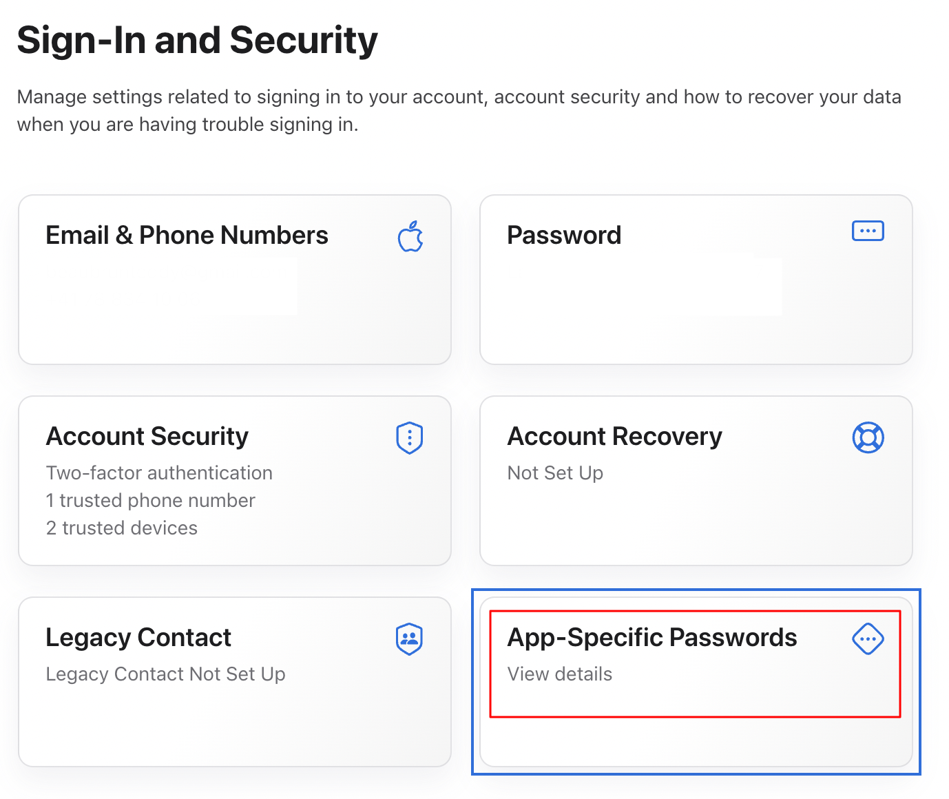 Um ein iCloud-Konto für den Mailversand unter Winbiz einzurichten, muss ein einmaliges Passwort von https://appleid.apple.com generiert werden. Sobald Sie sich eingeloggt haben, steht Ihnen das Menü Passwort generieren zur Verfügung.