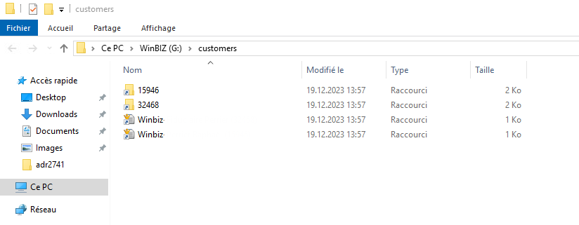 Der Windows Explorer ist nun geöffnet. Sie können den Ordner Ihres Clients öffnen, indem Sie auf die Verknüpfung des gewünschten Clients klicken :