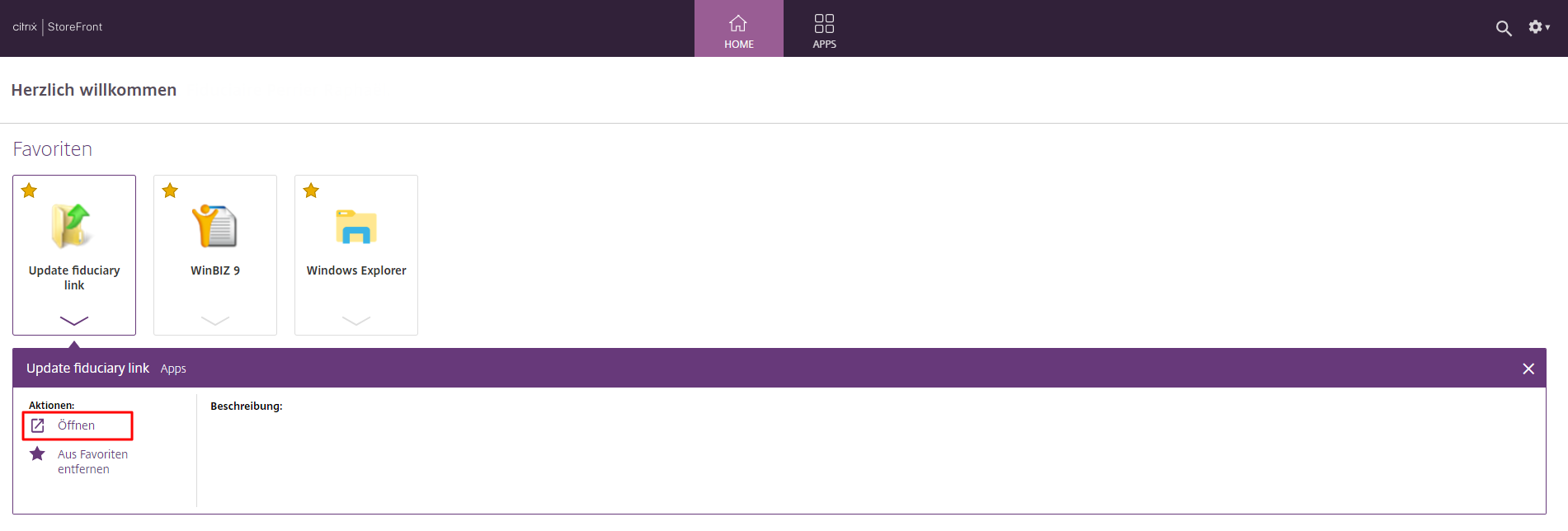Gehen Sie zunächst auf die Registerkarte "Anwendungen" und klicken Sie auf den Stern über der Schaltfläche "Update fiduciary link" :