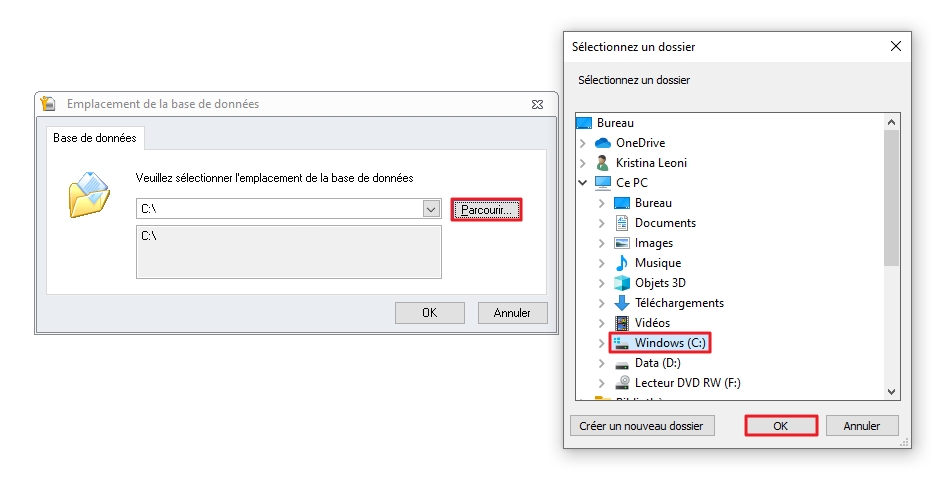 Vous pouvez désormais ouvrir Winbiz local et enregistrer le nouveau emplacement de votre base de données.