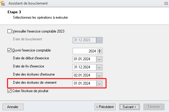 Il faut donc faire attention à ne pas saisir d'écritures dans ce journal si vous devez encore procéder à un bouclement de l'exercice précédent.
