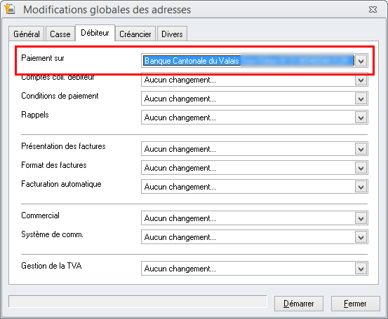 - Dans l'onglet Débiteur, choisissez la Banque par défaut.