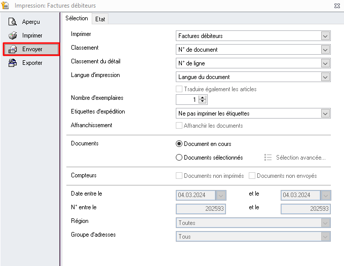 2. Appuyez sur l'option Envoyer située dans le menu de gauche.