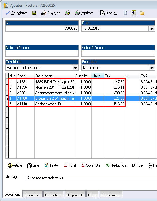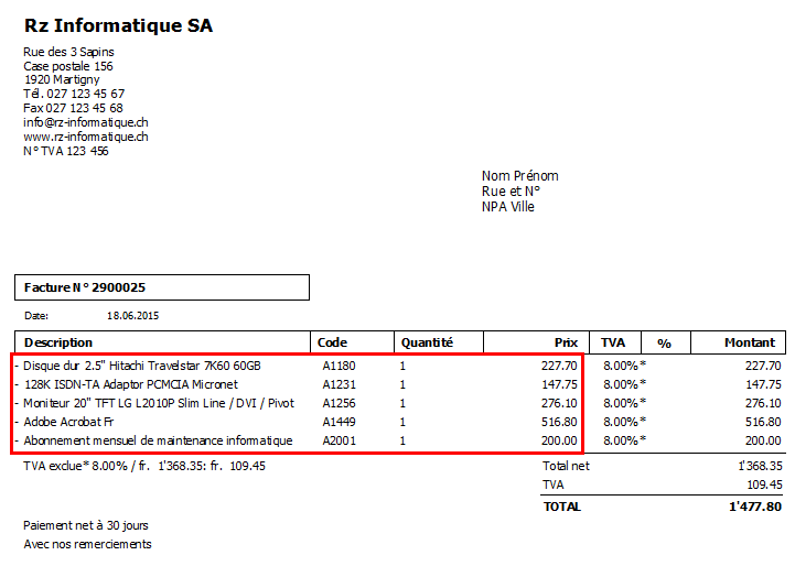 Lorsque vous effectuez l'aperçu d'une facture, les articles sont en désordre, par rapport à la facture.