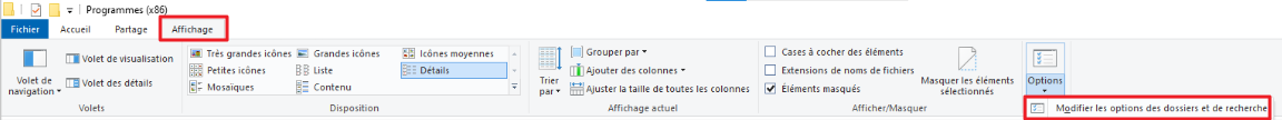 - Cliquez sur l'onglet Affichage et cochez "Afficher les fichiers, dossiers ou lecteurs cachés".