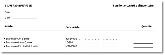 Imprimez la Feuille de contrôle de l'inventaire