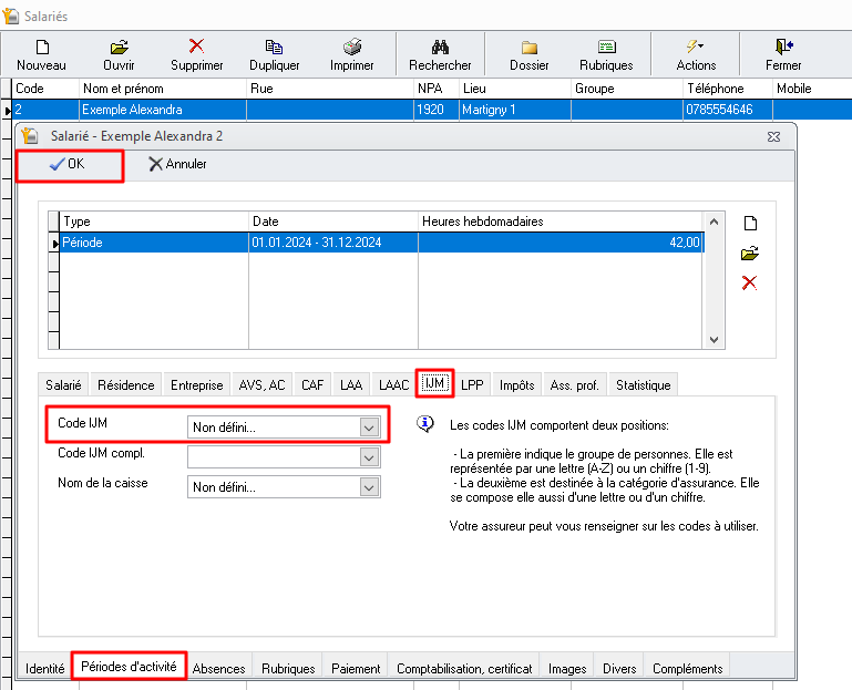Si le problème n'est toujours pas résolu, vérifiez qu'une caisse et un code IJM soit définit dans le salarié :