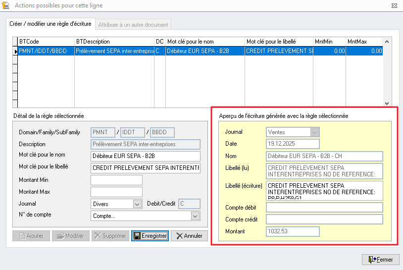 Une fois sauvegardée, la règle sera appliquée automatiquement à toutes les lignes similaires.