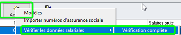 - La fenêtre des salariés, sous Action vérifier les données salariales.