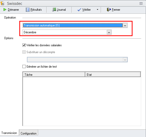 2. Transmettre via Swissdec les décomptes de l’impôt à la source (Transmission automatique IS) du mois de janvier au mois de décembre :