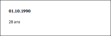 Voici l'expression utilisée lors de cet exemple: agecalculate({1.10.1990}, date())