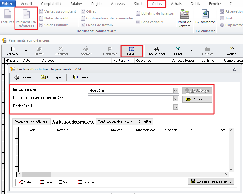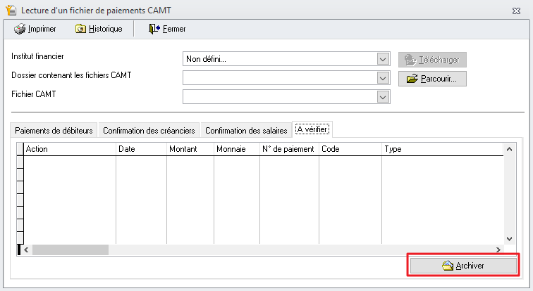 Finalement, archiver le fichier CAMT.
