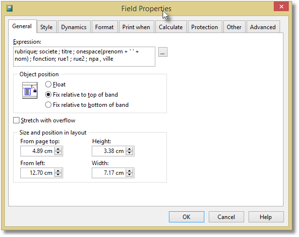 Dans cet état le bloc adresse est coupé par champs, vous pourrez alors :