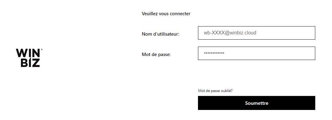 2. Saisissez votre nom d'utilisateur : wb-XXXX@winbiz.cloud.