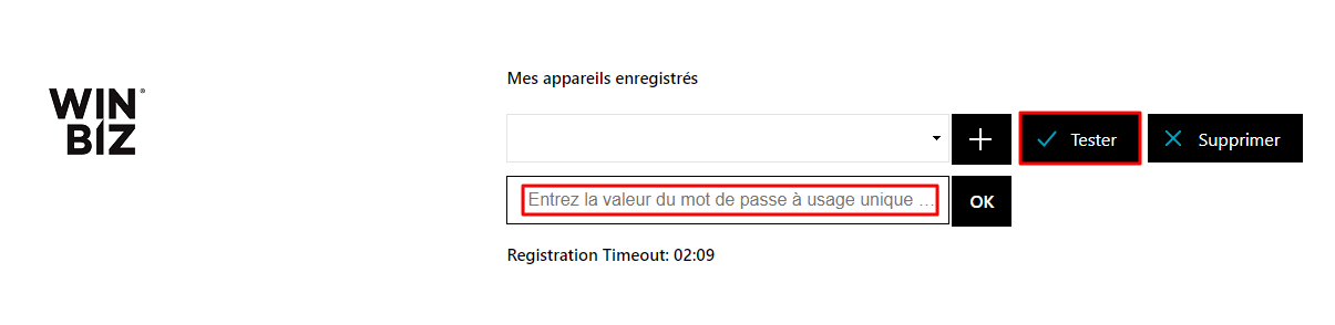 Afin de valider la liaison de votre compte Winbiz Cloud avec l'application Google Authenticator, vous devez encore tester la liaison en cliquant sur "Tester". Cette étape est obligatoire.